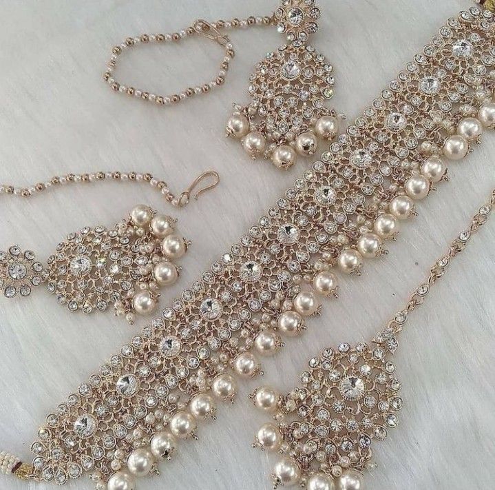 Drenched in pearls, soft kundan work, this set is made for those unforgettable bridal moments. From the layered necklace to the statement maang tikka and earrings, every piece feels royal, yet beautifully delicate.